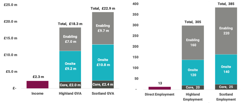 Our analysis showed that in 2024, the Port of Inverness generated an economic impact of £22.9 million GVA/year for the Scottish economy. This means every £1 of income received by the Port generates £10 GVA for the Scottish economy.